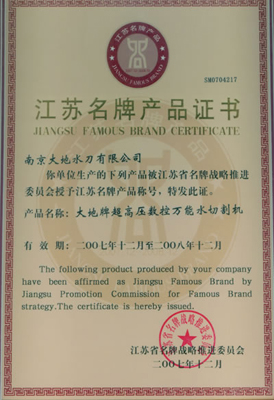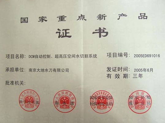 - 1. In 1996, we developed the first high pressure waterjet cutter in China. It is certified by the State Economic and Trade Commission and is categorized in National Industry and Scientific Research Project.